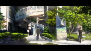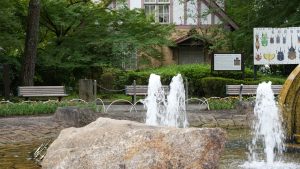 EDで登場する噴水は1分間隔で水を吹き出し続けています。