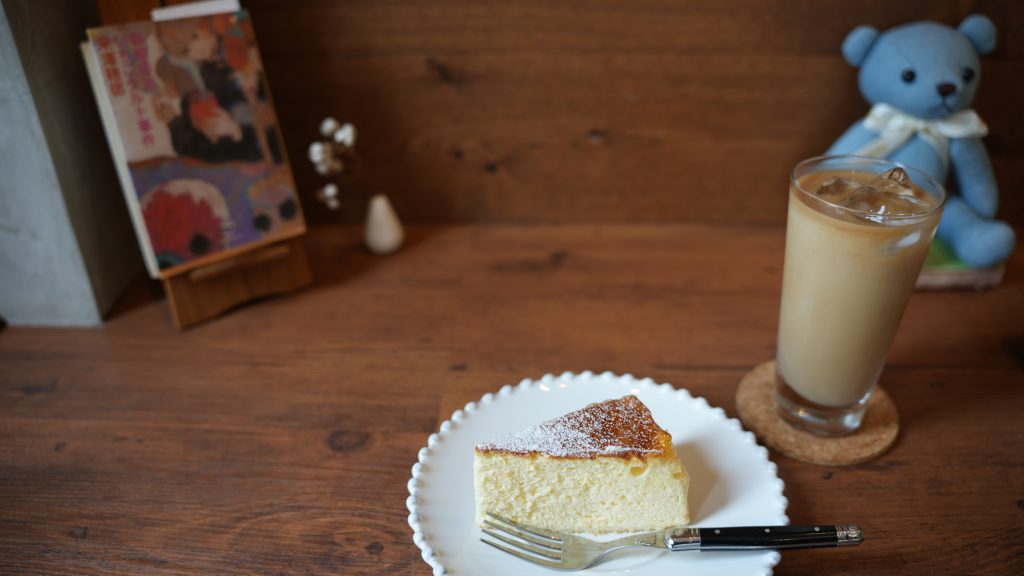 実際に入店してチーズタルトをいただきました。カウンター端の席には小市民シリーズの小説が置いてありました。