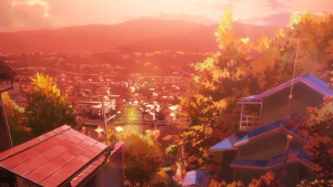 多くのカットで背景に山が登場しますが、その稜線の位置まで合わせようとすると望遠レンズが必要です。実際の場所より遠めに立ち位置をとり、圧縮効果を用いる必要があります。