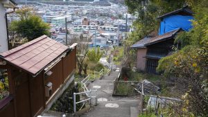 とんでもない急坂なので覚悟して登ったほうがいいです。私は地元の中学生に負けじとノンストップで登りましたが、最後には息が上がっていました。