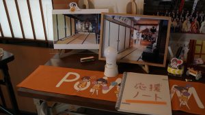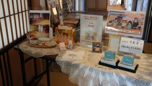 沼田市観光案内所で聖地マップの配布とオリジナルグッズの販売、等身大パネルの展示が行われています。