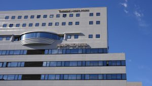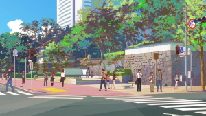 さくら橋通りとお濠端通りが交わるところにあります。