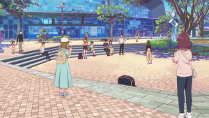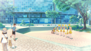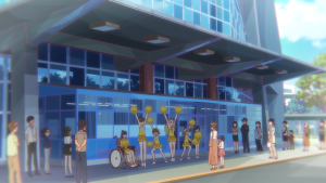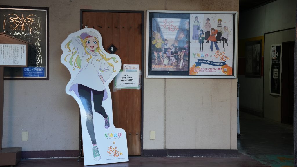 聖地ではありませんが、建物前でパネルの展示と聖地巡礼MAPの配布を行っています。