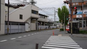 地図上では主人公が通う北宇治高校の最寄り駅は黄檗駅ですが、なぜかアニメではかなり離れた六地蔵駅が最寄り駅として描かれています。