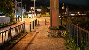 作中では川沿いまで近づいていましたが、私が訪れた際は立ち入り禁止になっていました。