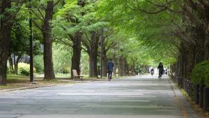 夏の雲公園の並木道と同じシーンで登場しますが、電話ボックスのみ光が丘公園にあります。
