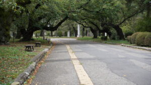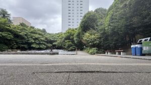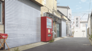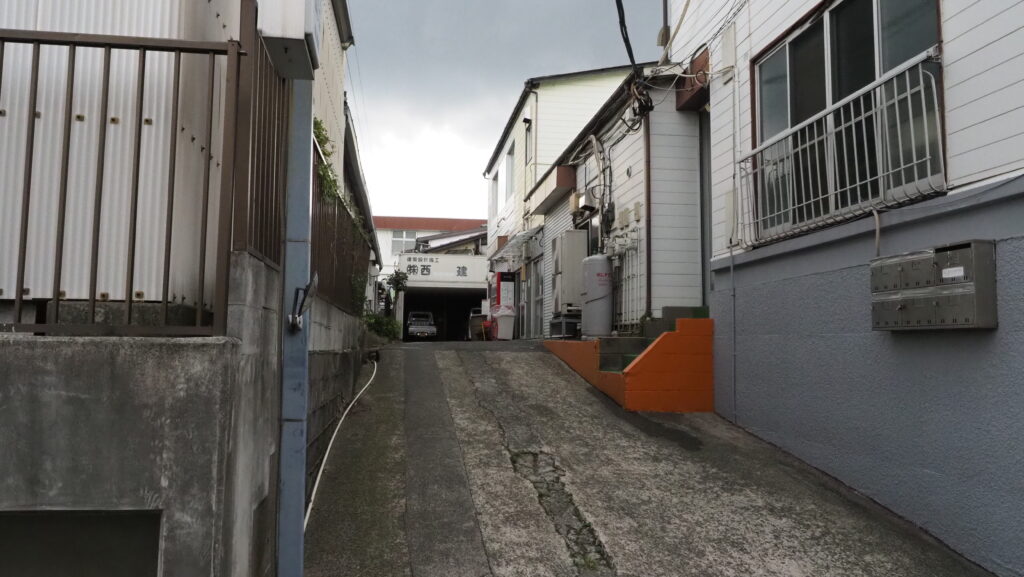 作中で更衣室の入り口として紹介された場所ですが、私道のようだったので立ち入りは遠慮しました。